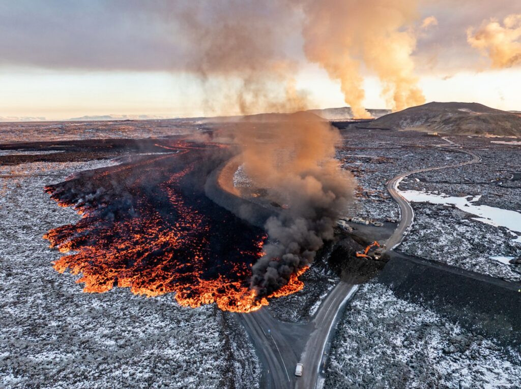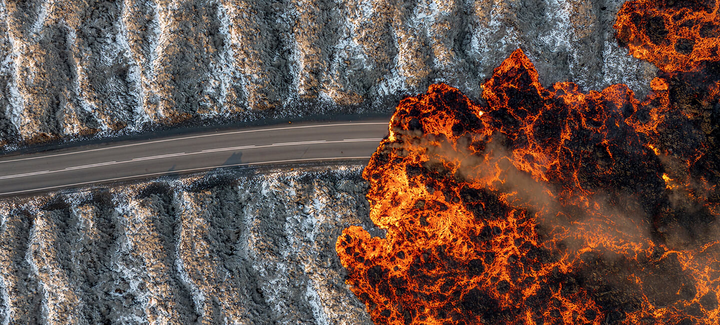 Bláalónsvegur (Route 426) used to be the main way to the Blue Lagoon, winding quietly across the Reykjanes Peninsula. In late November 2024, lava from the Sundhnúkur eruption flowed across the road, covering sections with solidified rock. The eruption created a three-kilometer fissure, and within hours, the familiar asphalt was buried, blocking the usual access to the spa and surrounding areas.