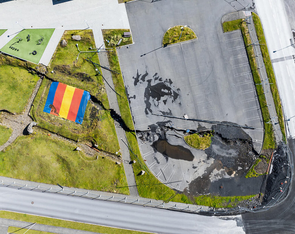 The ground above began to shift and sink dramatically. Old cracks like Stamphólsgjá tore wide open, and new fissures appeared throughout the town. Many houses now stand directly on or dangerously near these reopened wounds in the earth.