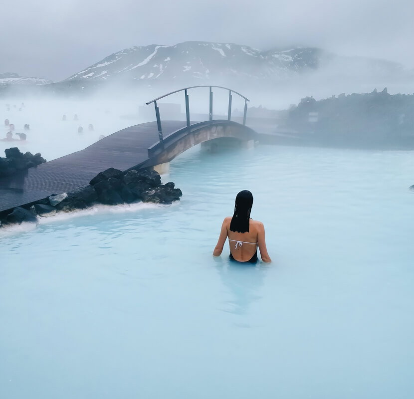 The Blue Lagoon needs no introduction as Iceland’s most famous geothermal destination. Here, the geothermal source originates 2,000 meters (about 6,600 feet) underground at 240 °C (464 °F) and cools naturally to 37–39 °C by the time it reaches the surface.